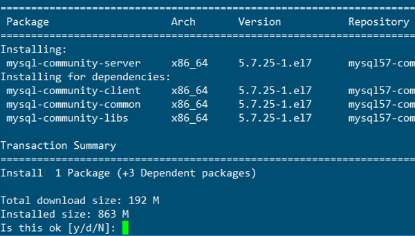 既然MySQL 的 yum源已经配置好了,安装MySQL服务非常简单,执行下面命令即可