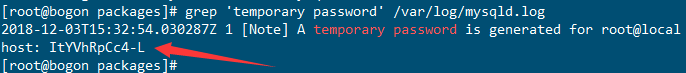 grep 'temporary password' /var/log/mysqld.log